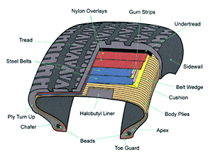 tires. Nylon overlays virtually eliminate tread